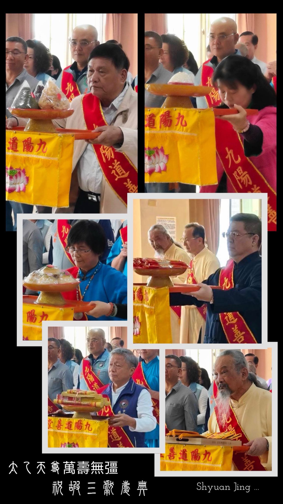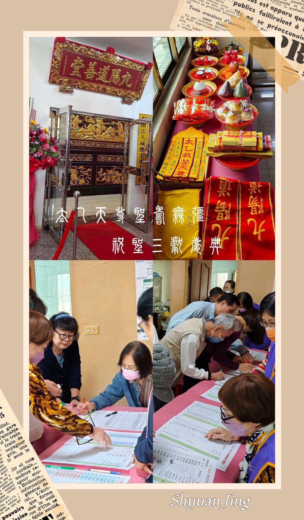 九陽道善堂、財團法人藏應弘道基金會、中華太乙淨土道教會及中華太乙生命關懷協會於114年12月28日(農曆11月9日)共同舉行114年度盛會「祝嘏三獻祈安團拜」以恭祝道教慈善祖師 太乙救苦天尊聖壽無疆。